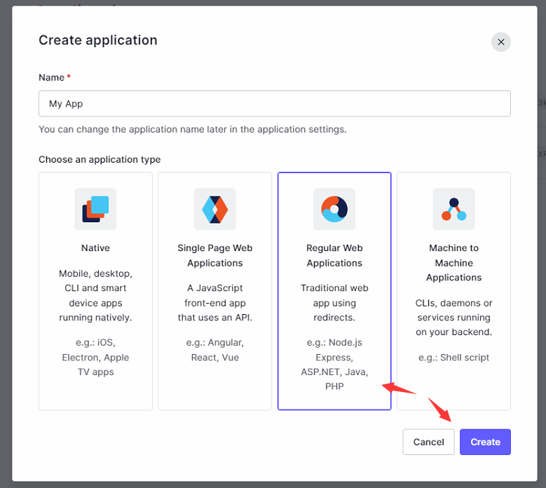 Select the "Regular Web Applications" option, and click the "Create" button: